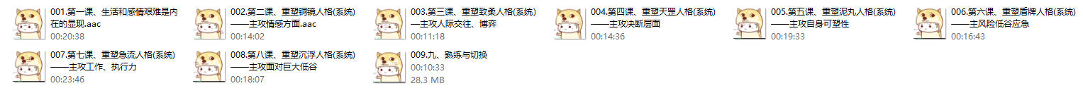 此课程就是一套先进的灵魂人格进阶系统,可以改变你的内置环境,让你的行为就像是变了一个人,通过七阵系统(铜镜、致柔、天罡、泥丸、盾牌、急流、浮沉)七个不同的灵魂重塑达到内在环境彻底的改变,间接改变你的人际,工作,气质,感情,内容有很大的实操性,绝不是心灵鸡汤的产物,它是一种术和道的结合,也是本人到现在一直践行的方法。