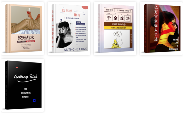 相信爱情,也清晰爱情婚姻背后的物质,人性,利益,纠结。白富美进阶教程《千金戏法:不动声色魅惑的妖女撩人术》,优雅女人撩人实操术,餐饮社交礼仪、如何调情,干货分享等等,女生一定要读哦!