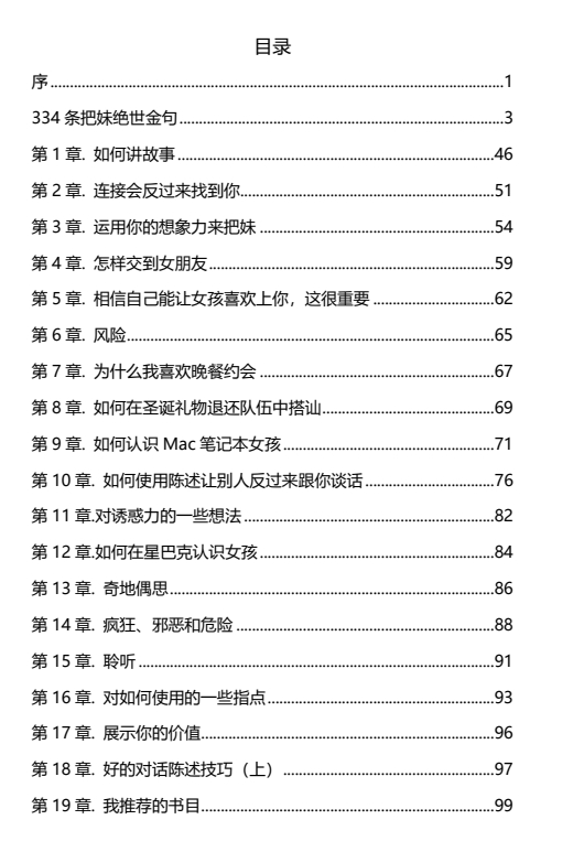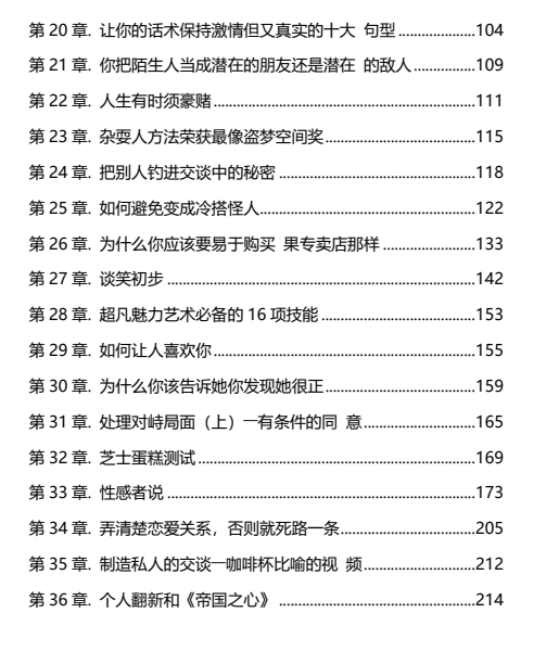 本站更多PUA电子书专区不仅收集了《谜男启示录》,恋爱学社网还收集了《神撩术》、《坏蛋之道》、《泡秘》、《灵丹妙药》、《白天约会宝典》、《男性智谋大师》、《叔叔教你护妹子》、《万能暧昧模型》、《马克方法》、《坏男人模式》、《爱情高位》、《高级魅力》等其他PUA电子书,对这部分课程感兴趣的兄弟,可以前往泡学电子书课程专区学习!