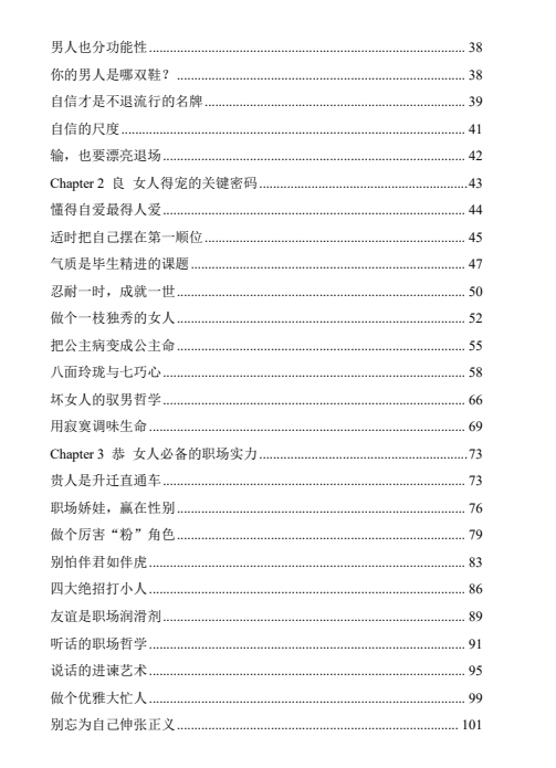 《厚黑的女人最好命》pdf电子版/无水印 2026-02-28 电子书 《厚黑女人最好命》——姐妹你够黑吗?简单的一个问候,却内含一个女人能够走上巅峰之路的奥秘,那些一等一的女人不是好命,是她们都会一点厚黑术! 资源下载资源下载立即下载 版权声明 1 本网站名称:智点情感 2 本站永久网址:https://qg.zdw88.com 3 本网站的文章内容均来源于网络,仅供大家学习与参考,如有侵权,请联系站长 QQ:972126097进行删除处理。 4 本站一切资源不代表本站立场,并不代表本站赞同其观点和对其真实性负责。 5 本站一律禁止以任何方式发布或转载任何违法的相关信息,访客发现请向站长举报 6 本站资源大多存储在云盘,如发现链接失效,请联系我们我们会第一时间更新。
