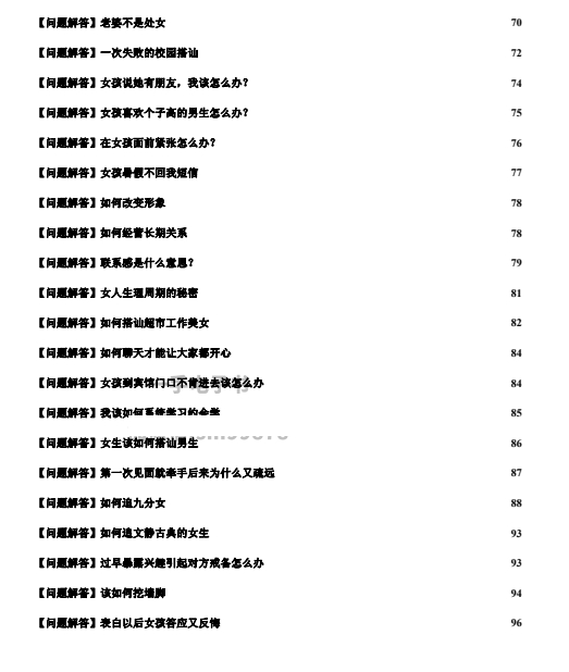 《把妹危机处理术》我相信上面列举的这些问题,在你的情感生活中一定经历过很多,而情感是最难搞定的。不如趁现在赶紧保存起来,等用时方能见招拆招!