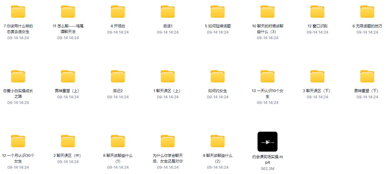 一套恋爱系统课程摆在我们面前从心态,外形,恋爱原理和误区,异性择偶偏好和男性价值体系建立从认识异性的渠道到如何约会,如何聊天,如何升级关系,幽默沟通,如何挽回。遇到高价值异性,如何追求都有系统性的讲解学习它可以很系统很高效的为我们的感情生活搭建起一个科学精准的导航,系统原价1288。